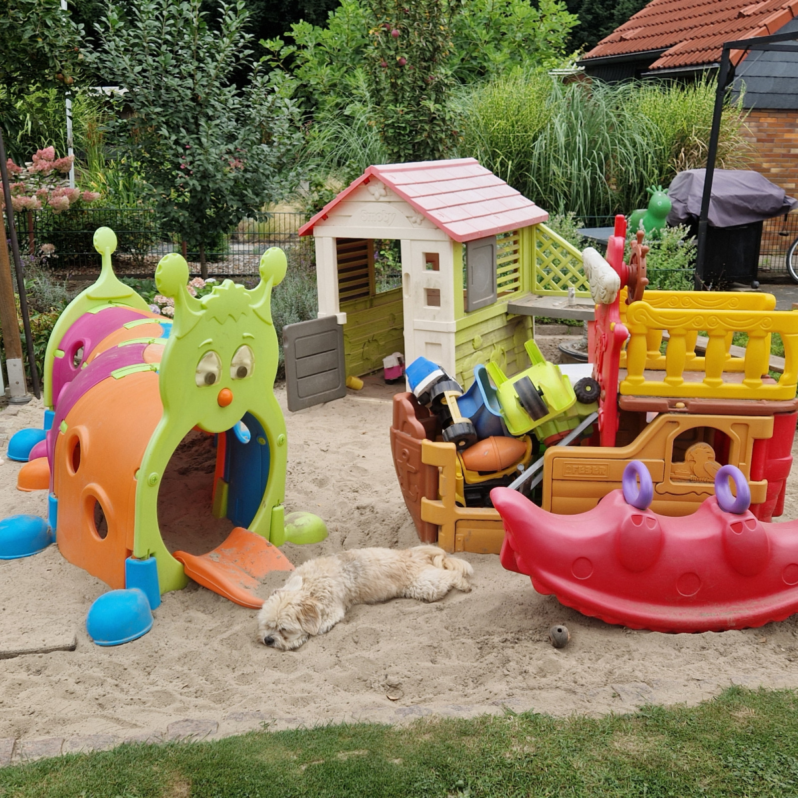 Es gibt folgende Besonderheiten: Kleiner nichthaarender kinderlieber Hund, Schrebergarten, frisch gekochtes essen, jeden Tag an der frischen Luft
